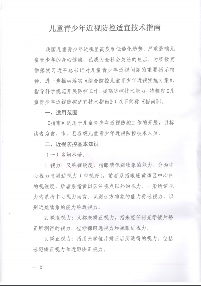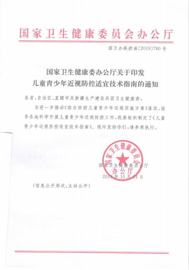 — 國家衛(wèi)生健康委辦公廳關(guān)于印發(fā)兒童青少年近視防控適宜技術(shù)指南的通知 —